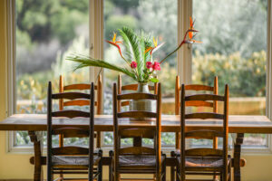 This amazing Retreat property overlooks the Topa Topa Mountain range offering the silence that only vast nature can provide. Here we can immerse ourselves in contemplative silence and peace. This stunningly beautiful facility is wonderfully spacious with vaulted ceilings and panoramic windows to the mountains.